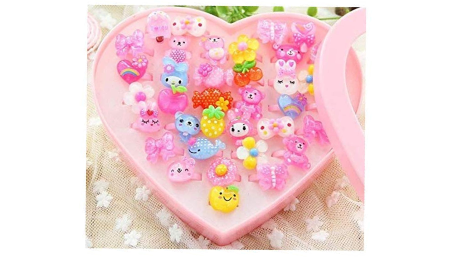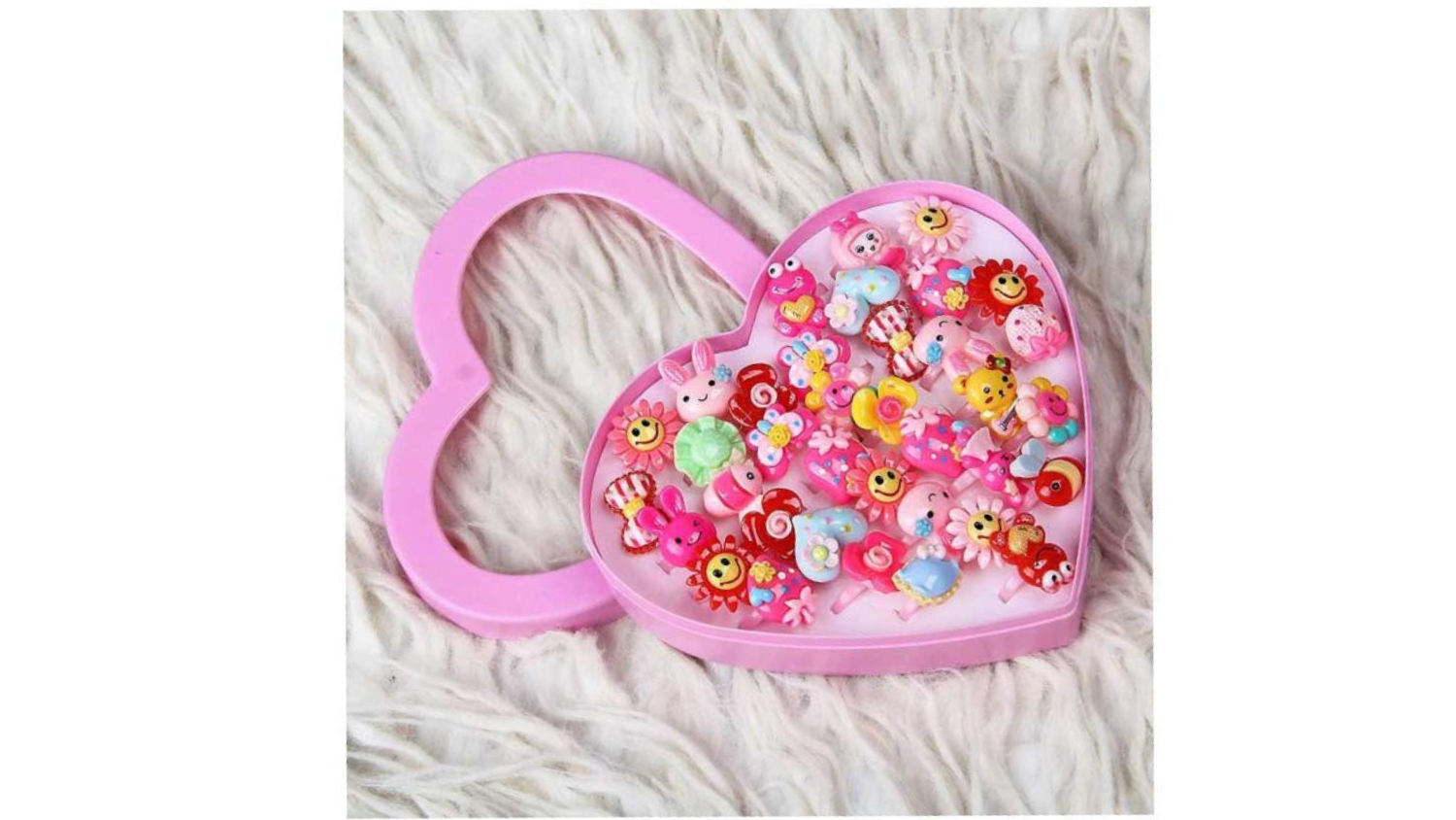 - kids cartoon shaped plastic play toy adjustable fancy rings for girls contain 36pcs durable set made up of high-quality plastic and crafted unique and attractive that will make your daughters mesmerized.
