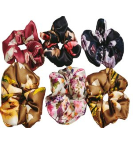 Women Hair Ribbon Scrunchies Band Ties Satin Floral Scarf Chiffon Hair Bands Ponytail Holders Scrunchy Girls Elastic Bow Accessories (Random Color ) Pack Of 6 (Floral print Scrunchy) Rubber Bands Accessories for Girls/Women, Bright Colors